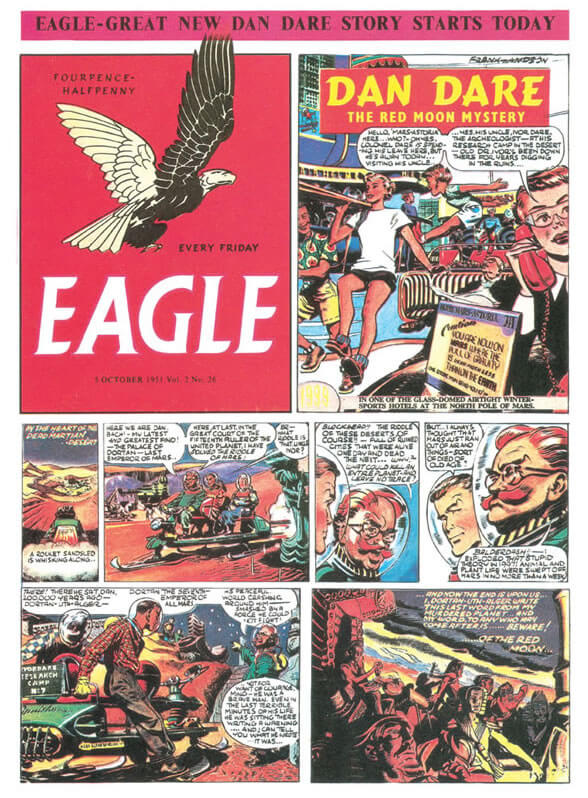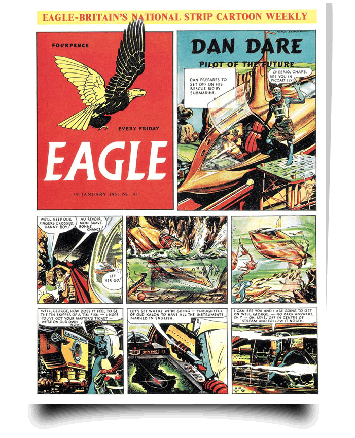 I intend looking into a mystery surrounding the 1950’s Eagle comic & it’s publisher, when the Hulton press was taken over by the Mirror group of papers in 1959, Frank Hampson the creator of Dan Dare was fired from the paper and never again, accept in redrawing some panels for a reprint, allowed to draw his own creation for publication purposes. But in essence this is the story of an artist who revolutionised the medium of comics elevating them into an art form. And of the enduring influence of his work and key creation Dan Dare on the imaginations of those who read his adventures in the Eagle boys comic.